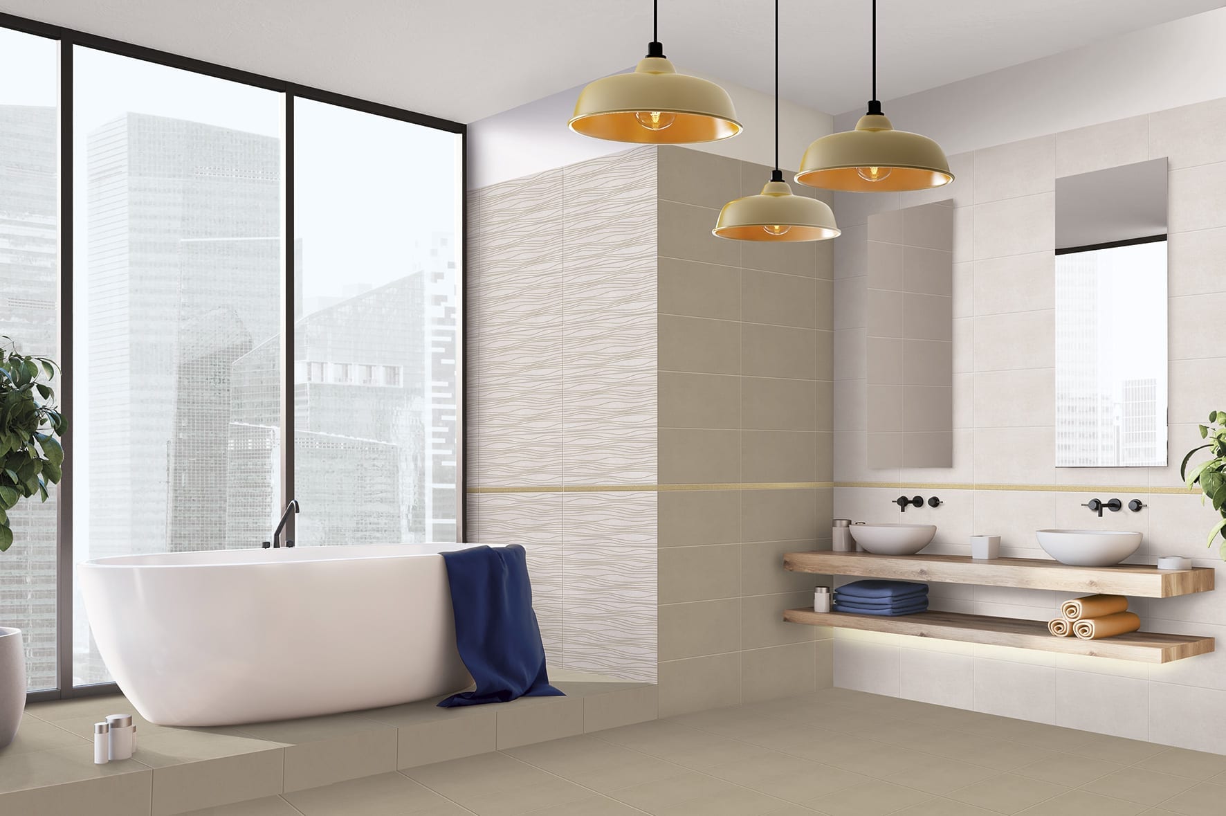 CESAROM® Ara este o colecție de gresie și faianță caracterizată prin eleganță și rafinament, care îmbină nuanțe calde de ivoriu și bej pe plăci ceramice lucioase.