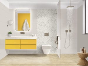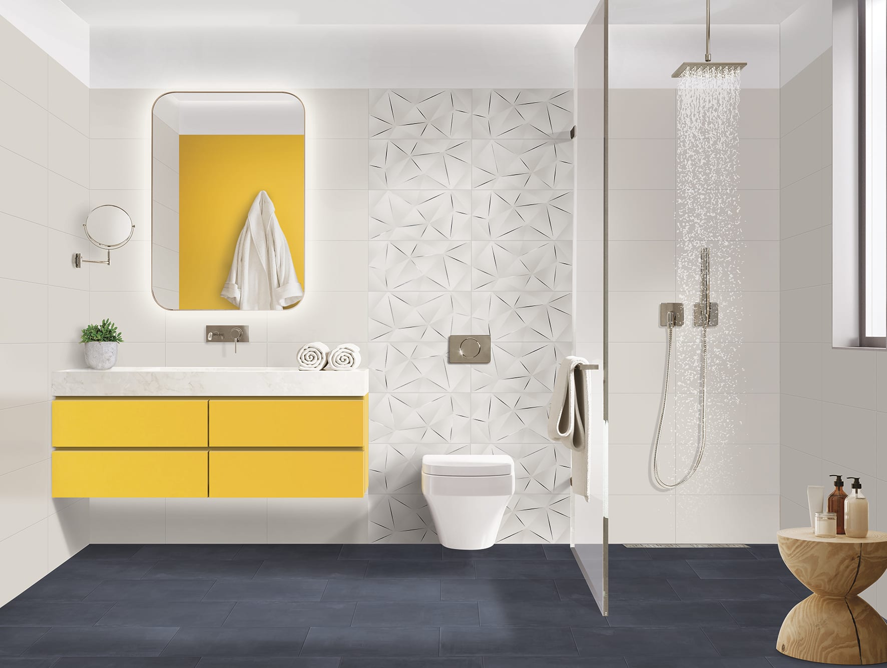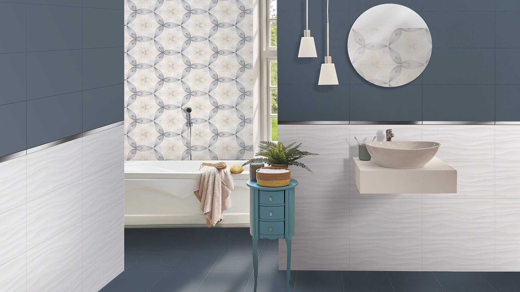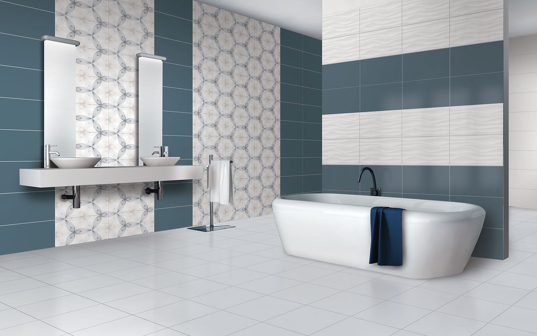 CESAROM® ColorLine propune amenajări în nuanțe de alb și navy, precum și un nou set de plăci de faianță gri cu decor special, oferind astfel multiple posibilități de design. Colecția cuprinde faianță cu suprafață netedă, mată, dar și plăci cu structură în valuri. Acestora li se mai adaugă două variante de faianță cu decor geometric: o variantă multicoloră care formează un pattern captivant și un decor cu aplicații speciale de platină care creează iluzia optică de model tridimensional.