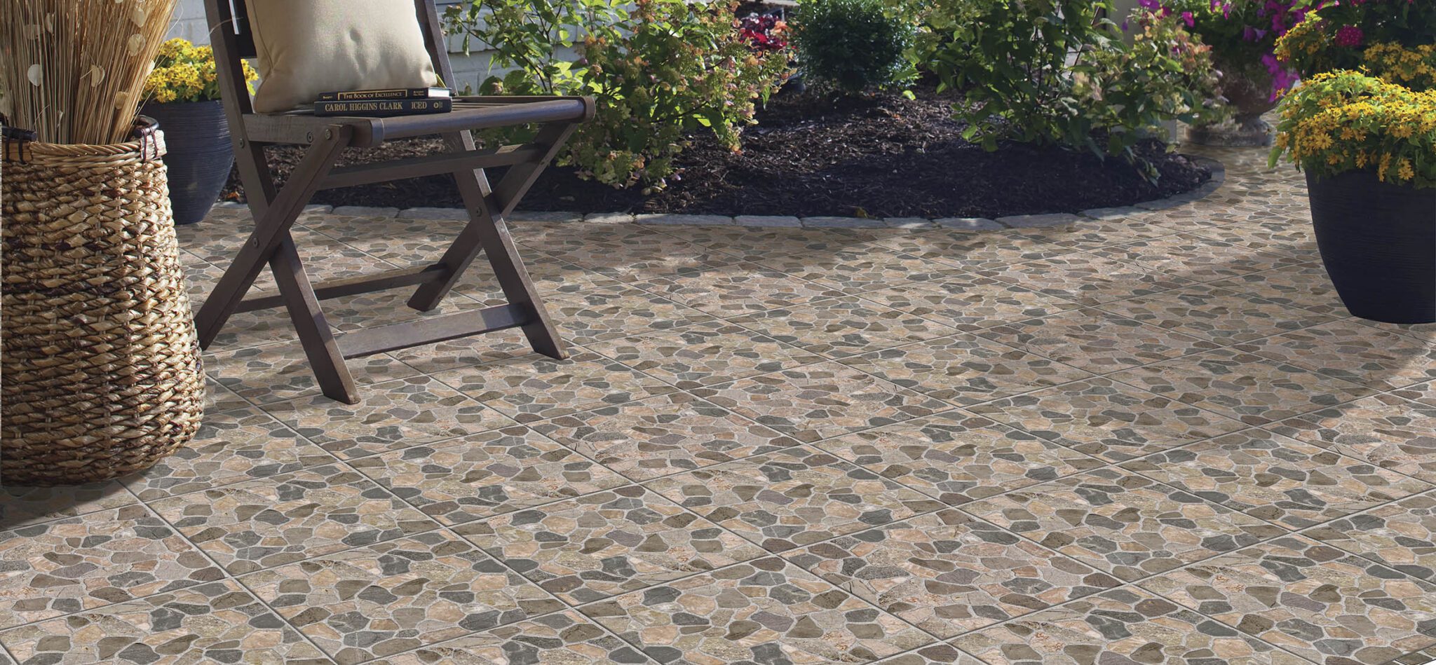 Stilul abordat este cel rustic, cu pietre de râu de forme diferite, potrivite pentru spațiile exterioare. CESAROM® Garden este o colecție de gresie porțelanată perfectă pentru amenajarea curților și teraselor.