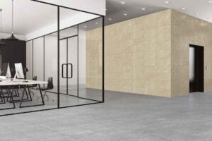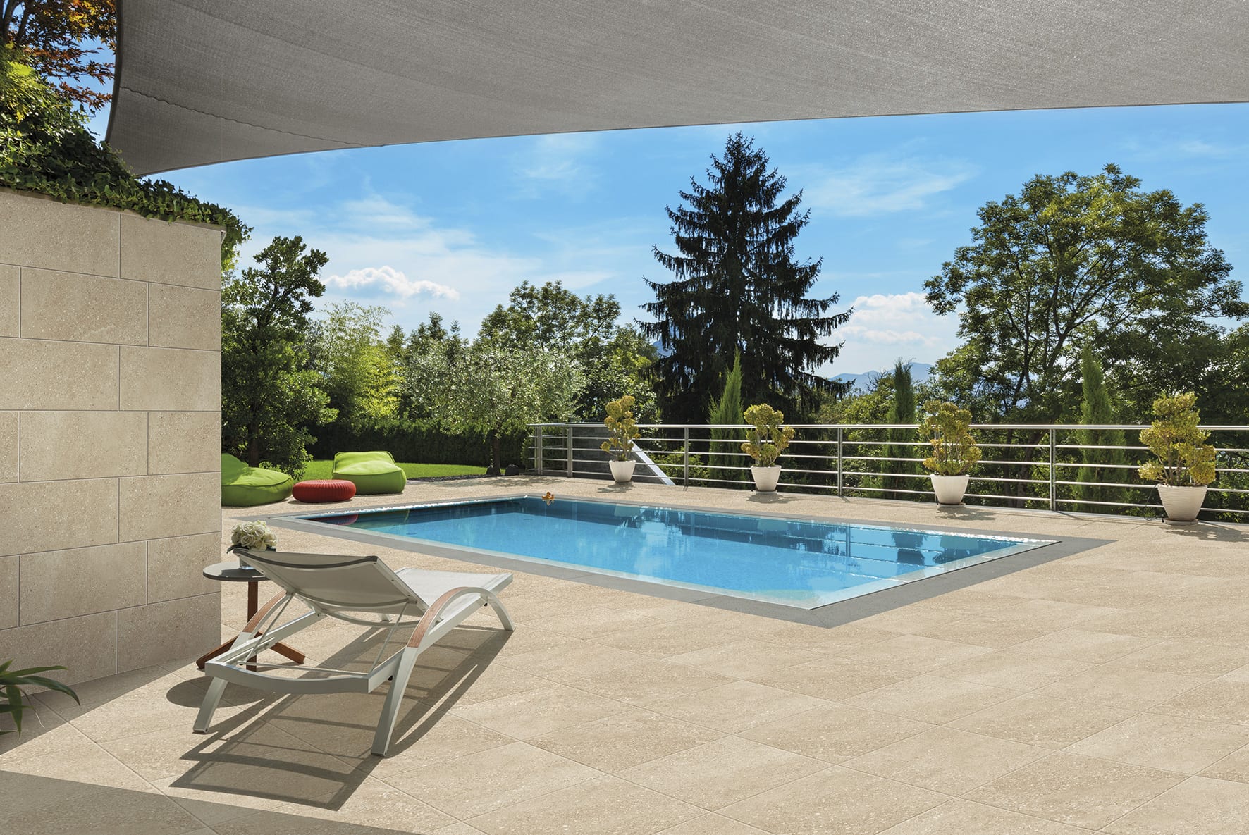 Plăcile în nuanțe de gri și bej au design de piatră și se remarcă printr-o aplicație specială (microgranilia) care îi da un ușor luciu și proprietăți anti-alunecare. Recomandăm gresia CESAROM® Piedra pentru amenajarea de spații office și zone exterioare cu piscine.