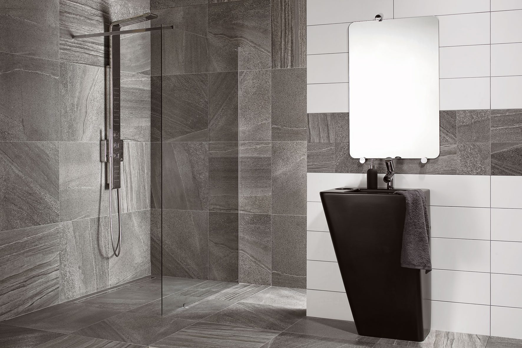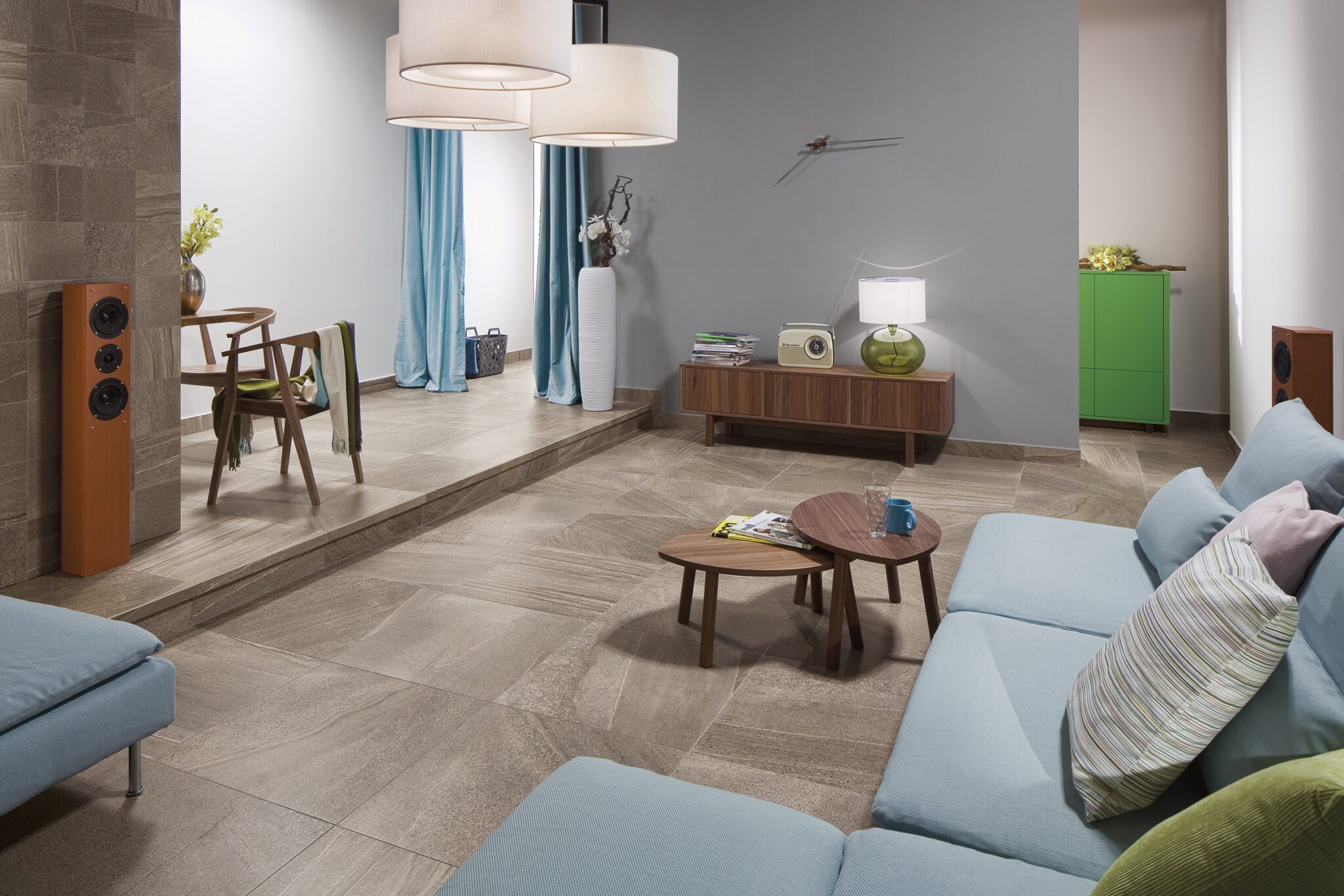 Gresia porțelanată din colecția RAKO® Random în nuanțe de gri, bej și maro, propune structuri distincte care imită perfect aspectul de piatră. Printate cu ajutorul tehnologiei HD print, gresiile din colecția RAKO® Random sunt produse deliberat cu fluctuații semnificative pentru a fi cât mai fidele pietrei naturale.