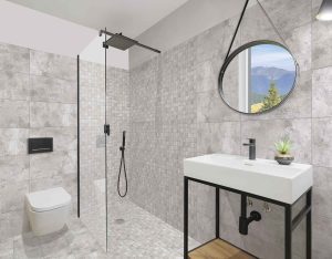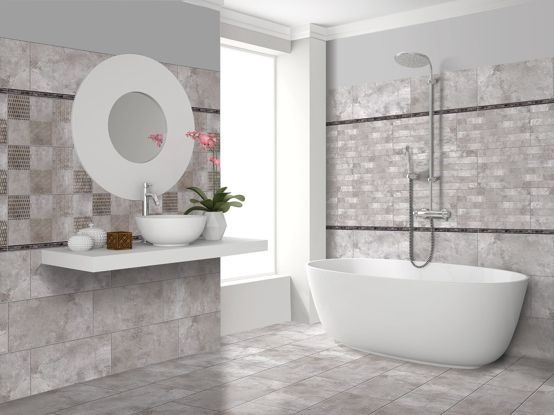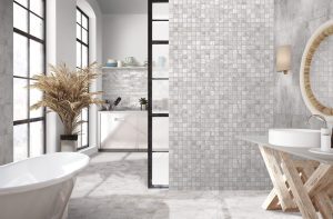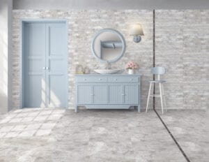 Designul CESAROM® Crust este soluția ideală și pentru amenajarea cu plăci ceramice a spațiilor mici. Același efect decorativ “stucco veneziano” este disponibil pentru faianța 40×20 și gresia porțelanată 45×45. Tonul gri inspiră amenajări interioare moderne cu gresie și faianță.