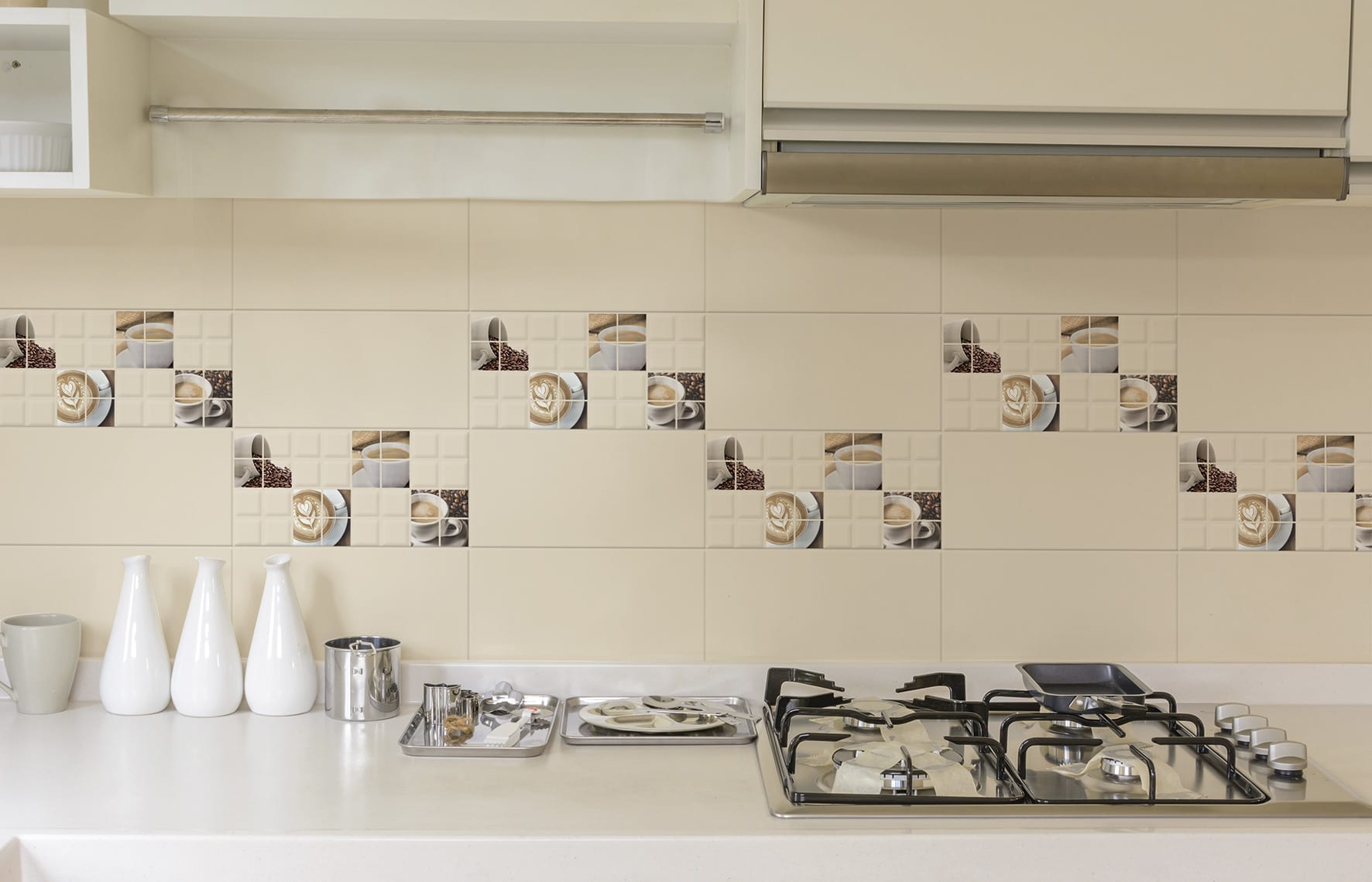 CESAROM® E-Project Ivory propune plăci lucioase de faianță în nuanțe de ivoriu, asociate cu două decoruri care ies în evidență prin structura patch cu forme geometrice și linii în zig zag cu aplicații speciale aurii. Colecția vine și cu o faianță decorativă special creată pentru amenajarea bucătăriilor.Pentru o ambientare completă, faianțele din colecția E-Project Ivory pot fi combinate cu gresiile porțelanate 45×45 CESAROM® Natura sau Nalim.