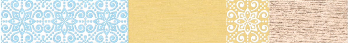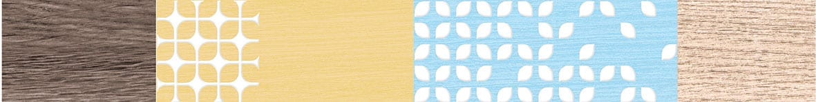 Colecția CESAROM® Nordic Wood surprinde farmecul nordului în plăci de faianță cu suprafață lucioasă și design tip lemn asociate cu brâu cu motive florale și geometrice în culori fresh și gresie mată cu pattern-uri realizate din lamele de lemn.