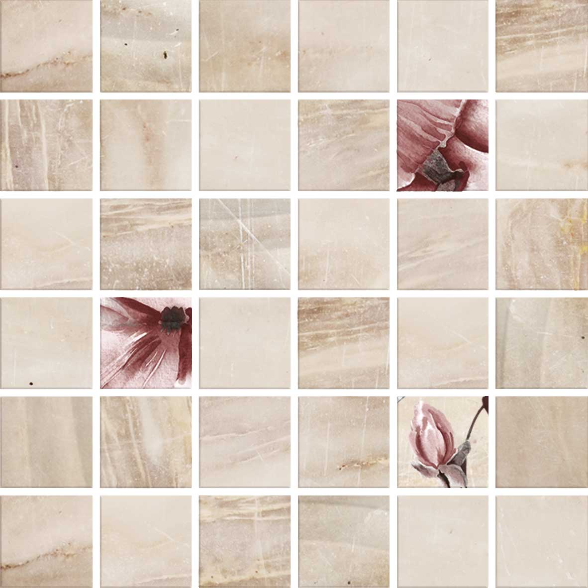 Nuanțele calde de bej și plăcile lucioase cu design marmorat caracterizează CESAROM® Soft, o colecție de gresie și faianță care propune atât plăci simple cât și plăci cu structură, decoruri de faianță cu modele geometrice și florale, completate cu mozaicuri elegante.